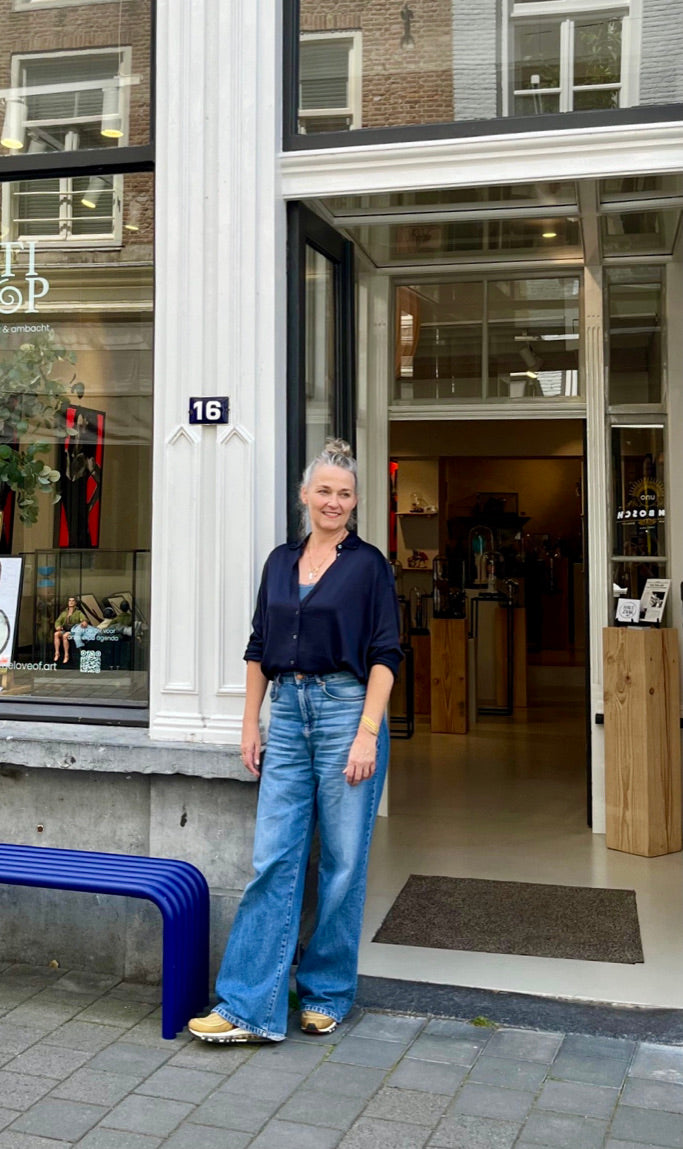 Het combineren van verschillende materialen en kleuren is mij op het lijf geschreven. Ik houd van kloppende of juist contrasterende composities"